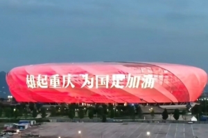 重慶市兩江新區管委會透露,龍興足球場及周邊區域現已完成各項籌備工作,全力營造濃厚氛圍,龍興足球場的外立面也打出了“雄起重慶 為國足加油”的巨型字幕,龍興足球場的外立面有46萬顆燈珠,夜幕降臨時整個外立面可以變成8萬平方米的LED顯示屏。