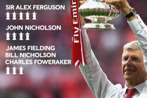 體育資訊6月22日訊 足總杯官方統(tǒng)計(jì)了教練帶隊(duì)奪冠的次數(shù),并列出榜單,溫格7次斬獲足總杯居首。