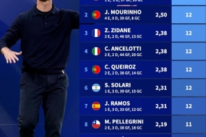 2000年以來皇馬主帥前16場比賽勝場榜: