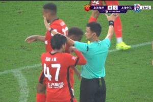 體育資訊06月22日訊 足協杯1/8決賽,上海海港vs上海申花。比賽第15分鐘,馬納法突入禁區倒地,主裁判第一時間示意沒有點球。VAR介入核查,確認了主裁判的判罰。