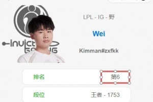 而韓服排位數(shù)據(jù)小程序顯示,iG打野Wei目前已經(jīng)打上韓服前十。