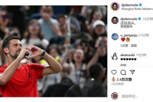 德約科維奇社媒曬出比心的照片,慶祝勝利,并用中文寫道:“還在戰斗。”