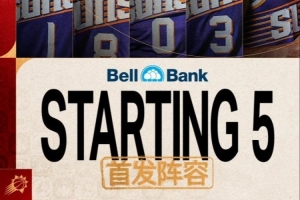 賽前太陽官方公布首發陣容:布克、阿倫、鄧恩、狄龍、伊戈達羅,并在圖中配上了中文“首發陣容的字樣”。