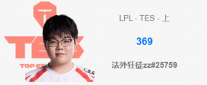 體育資訊10月11日訊?隨著S15世界賽的臨近各支戰隊的選手也在加緊訓練,根據排位數據網站顯示,TES上單369的狀態堪憂,峽谷之巔Rank七把僅贏1局!