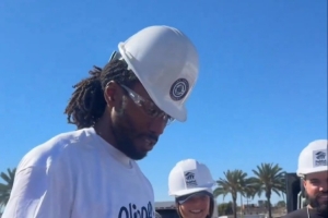 快船全員今天參加社區活動,官推曬出視頻,一位小女孩問小卡身高,后者回答6英尺7英寸(約2米01)。