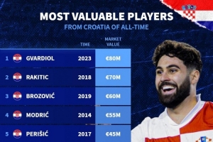 克羅地亞球員歷史最高身價(jià)榜: