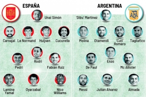 體育資訊10月13日訊 根據《馬卡報》報道,西班牙隊vs阿根廷隊的歐美杯可能明年3月在多哈進行,《馬卡報》隨后撰文對比了兩隊首發情況。