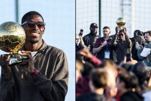 法國足協曬照,登貝萊回到成長之地埃夫勒,向家鄉人民展示了他的金球獎。