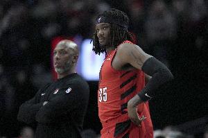 開拓者的兩位傷員羅威和塞布爾今天都一定程度的參與了球隊(duì)的訓(xùn)練,比盧普斯說:“他們?nèi)晕茨軌騾⑴c全場對抗訓(xùn)練,但恢復(fù)狀態(tài)還不錯。”