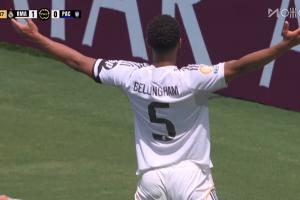 比賽第35分鐘,弗蘭-加西亞橫敲,貝林厄姆突入禁區(qū),左腳抽射破門!場上比分皇馬1-0帕丘卡。