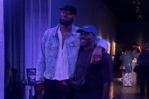 詹姆斯曬出了他和繪畫藝術家Derek Fordjour在后者畫展上的合影,并寫道:“恭喜我的兄弟!我為你感到無比驕傲,我看到和聽到的一切讓我深受啟發!感謝你的邀請!??????”