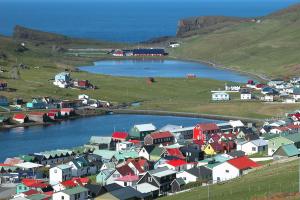 在挪威與冰島之間的茫茫大海上,有18座島嶼如造物主不經意間灑落的翡翠,點綴在深藍色的北大西洋中,這里就是法羅群島(法羅語:F?royar,丹麥語:F?r?erne),丹麥王國的海外自治領地。1399平方公里的陸地上,陡峭的懸崖如同巨人的階梯,直插洶涌的海面,1117公里曲折的海岸線勾勒出這片土地倔強的輪廓。