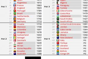 其中德國升至一檔,克羅地亞跌至二檔,澳大利亞升至二檔,首進世界杯的佛得角在四檔。