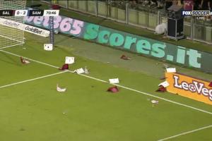薩勒尼塔納與桑普多利亞的比賽以最糟糕的方式結束,這是意乙保級附加賽的次回合比賽。在首回合0-2落后的情況下,薩勒尼塔納回到主場又丟兩球,以0-4的總比分落后。在這樣的情況下,薩勒尼塔納球迷在比賽的第65分鐘開始向場內投擲物品和座椅,最終導致比賽被暫停。經過長時間的停頓后,雙方重新回到球場,但裁判被迫再次暫停比賽,并徹底中止了比賽。