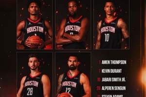 控衛(wèi)湯普森,鋒線杜蘭特、史密斯,前場申京、亞當(dāng)斯!