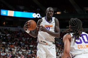 本場比賽,太陽的10號(hào)秀馬盧阿奇投籃10中8,三分球1中1,高效拿下17分8籃板2助攻3搶斷2蓋帽的全面數(shù)據(jù)。