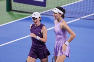 體育資訊10月15日訊 2025寧波網(wǎng)球公開賽雙打首輪,王欣瑜、鄭賽賽組合以6-4、6-3擊敗阿普爾頓、哈弗拉格組合,成功晉級八強。