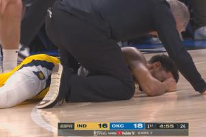體育資訊06月23日訊 現場記者Lisa Salters報道了步行者的官方消息:哈利伯頓因為右小腿部位的傷勢,退出今日比賽!