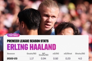 體育資訊10月17日訊 據(jù)Opta統(tǒng)計(jì),哈蘭德本賽季每90分鐘射門、進(jìn)球等數(shù)據(jù)創(chuàng)造英超生涯新高。