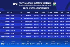 體育資訊10月17日訊 中國足協(xié)公布中超第27輪裁判安排,孟祥昆執(zhí)法浙江vs泰山,麥麥提江執(zhí)法玉昆vs津門虎。
