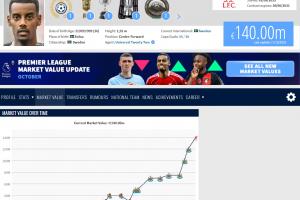 德轉管理員表示:“所有人都認為伊薩克的轉會費將打破英超紀錄,事實果然如此。這名瑞典前鋒以1.45億歐元基礎轉會費登陸安菲爾德,其市場價值隨之升至1.4億歐元。