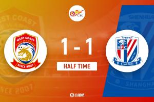 第20分鐘,吳曦主罰點球破門,上海申花1-1扳平青島西海岸↓