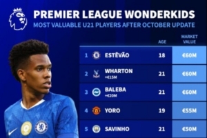 體育資訊10月18日訊 德轉在北京時間本月17日更新英超球員身價,同時列出了英超U21球員身價榜,埃斯特旺、亞當-沃頓、巴萊巴三人6000萬歐身價最高。