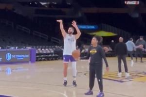 體育資訊10月18日訊 今天,湖人前鋒馬克西-克萊伯賽前在球館內進行了三分訓練。