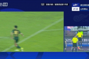 體育資訊10月18日訊 中超第27輪,浙江坐鎮主場對陣山東泰山,主裁親自回看VAR,沒有判罰浙江球員禁區內手球犯規,目前比分仍為0-0