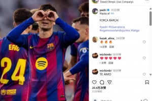 本場比賽佩德里打進(jìn)精彩進(jìn)球,賽后他也在社媒曬出慶祝進(jìn)球照片,配文寫道:“直到最后,加油巴薩!”