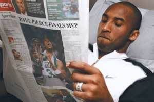 皮爾斯:“科比以前在采訪中曾說會觀摩我的腳步技術(shù)??票瘸ミ\動能力后仍然能有精英級別的得分能力,因為他的球商和腳步都是頂級?!?/p>
