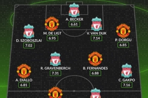 體育資訊10月19日訊 本輪英超將上演曼聯與利物浦的焦點對決,數據網站Whoscored也盤點了兩隊球員本賽季英超場均評分最高陣容,具體如下: