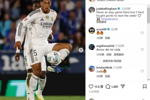 貝林厄姆社媒曬出比賽照片,配文:“在這里比賽從來都不輕松,但以一場苦戰拿下三分,開啟新的一周?!?/p>