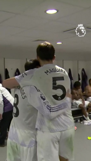 賽后馬奎爾接受完采訪回到更衣室,曼聯(lián)全隊熱烈歡迎了這位進球功臣,為他送上鼓掌和拍頭祝賀,隊長B費更是搞怪慶祝。