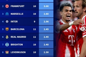 體育資訊10月21日訊 德轉(zhuǎn)盤點(diǎn)了本賽季五大聯(lián)賽球隊(duì)目前場(chǎng)均進(jìn)球最多榜單(各項(xiàng)賽事),其中拜仁高居榜首,具體如下: