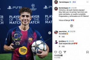 體育資訊10月22日訊 在本輪歐冠小組賽的一場比賽中,巴薩主場6-1擊敗奧林匹亞科斯,比賽中巴薩邊鋒費(fèi)爾明上演帽子戲法。
