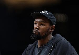 全場比賽,杜蘭特出戰(zhàn)47分鐘,16投9中,三分球4中0,6罰5中得到23分9板3助的數(shù)據(jù)。