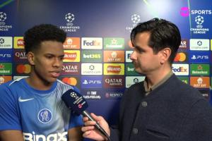 記者: 我想問你兩個時刻。首先,當你得知將在自己的首場歐冠比賽中首發時,你是什么感覺?其次,當恩佐把點球讓給你主罰時,你又是怎樣的心情?