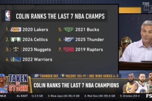 在播客節目中,名嘴Colin Cowherd給這七個總冠軍進行排名,他給出的排名是: