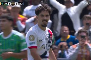 體育資訊06月24日訊 世俱杯巴黎vs西雅圖海灣人第35分鐘,維蒂尼亞禁區外插上勁射,皮球擊中K77后變線入網。此時比分變為巴黎1-0領先。這球判定為K77的進球。