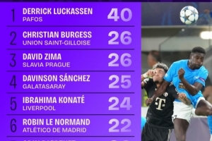 體育資訊10月23日訊 本賽季歐冠聯賽階段已戰罷3輪,Squawka統計了到目前為止的解圍榜單。帕福斯后衛盧卡森40次解圍斷崖式領先,圣吉羅斯后衛布爾格斯和布拉格斯拉維亞后衛齊瑪26次分列二三位。
