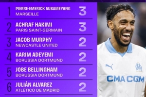 體育資訊10月23日訊 本賽季歐冠聯賽階段已戰罷3輪,Squawka統計了到目前為止的助攻榜,馬賽前鋒奧巴梅揚和巴黎后衛阿什拉夫均是3次助攻,分列前二。