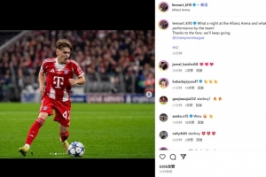 他也在賽后通過社媒曬出自己的比賽照并配文:“在安聯球場的精彩一夜,球隊的表現也太出色了!感謝球迷們,我們會繼續前進。”