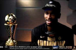 體育資訊6月24日訊 今日,ESPN播出了在總決賽搶七結束后對于奪得總決賽MVP的雷霆后衛謝伊-吉爾杰斯-亞歷山大的采訪。