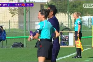 體育資訊10月24日訊 U17女子世界杯小組賽C組,厄瓜多爾女足U17vs中國女足U17。比賽第73分鐘,中國隊教練組申請VAR挑戰,認為對手禁區內手球。裁判觀看回放后判認定不是點球。