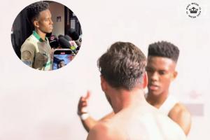 梅西對我眨了眨眼,比賽開始時我的腿都在發抖。能夠與這樣一位偶像、一個全世界的榜樣球星同場競技,真是太令人激動了。這對我來說是一種巨大的喜悅。