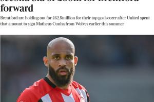 體育資訊06月24日訊 據多家英國媒體報道,曼聯已經以超6000萬英鎊,再次報價布倫特福德前鋒姆貝莫,《泰晤士報》指出,布倫特福德希望得到更高的報價。