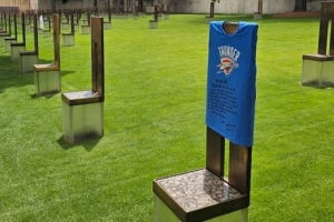 注俄克拉荷馬城爆炸紀(jì)念館是紀(jì)念 1995年發(fā)生在俄克拉荷馬城的聯(lián)邦大樓爆炸事件遇難者的場(chǎng)所,紀(jì)念館位于當(dāng)年爆炸案現(xiàn)場(chǎng),設(shè)有戶外紀(jì)念區(qū)、紀(jì)念池、168把空椅子(代表每一位遇難者)。