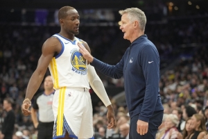 “我就是喜歡他的態(tài)度,”科爾說(shuō)道,“我喜歡他帶來(lái)的氛圍。他很自信。在經(jīng)歷了所有合同的事情之后,他絕對(duì)感覺(jué)自己是球隊(duì)的一份子,是我們共同奮斗目標(biāo)的一部分。我認(rèn)為他的隊(duì)友們——吉米、斯蒂芬、德雷蒙德——做得非常好,都張開(kāi)雙臂歡迎他回來(lái),提醒他合同的事就是合同的事。”