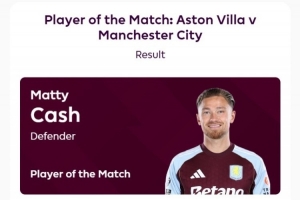 據賽后英超官方的消息,打進制勝進球的卡什當選此役全場最佳球員,在評選中獲得58%的投票。